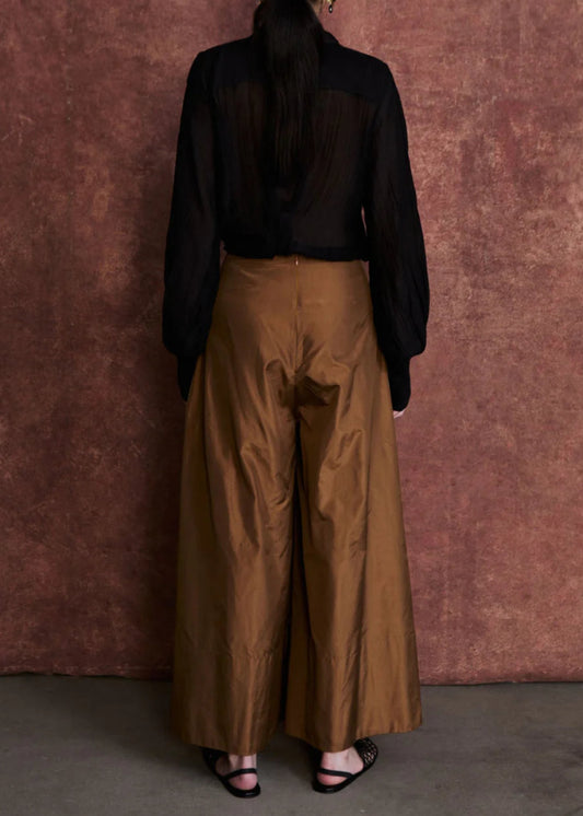 Chan Luu Techno Taffeta Ultra Wide Leg Trouser | Bronze