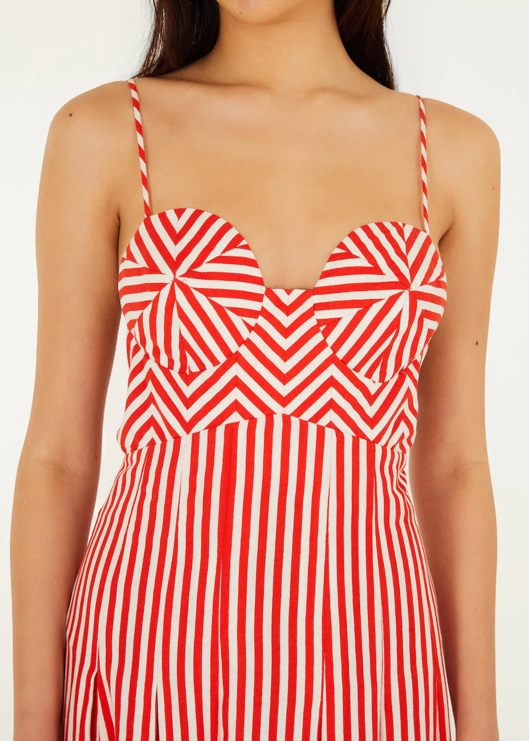 FARM Rio Checkered Stripes Off-White Sleeveless Maxi Dress