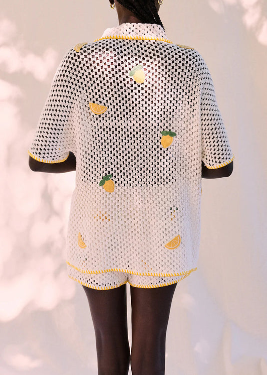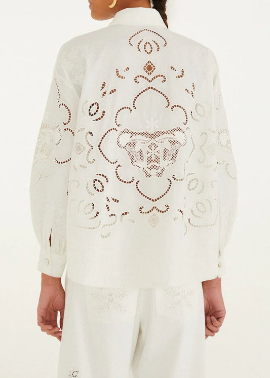 FARM Rio Off-White Embroidered Flowers Richelieu Shirt
