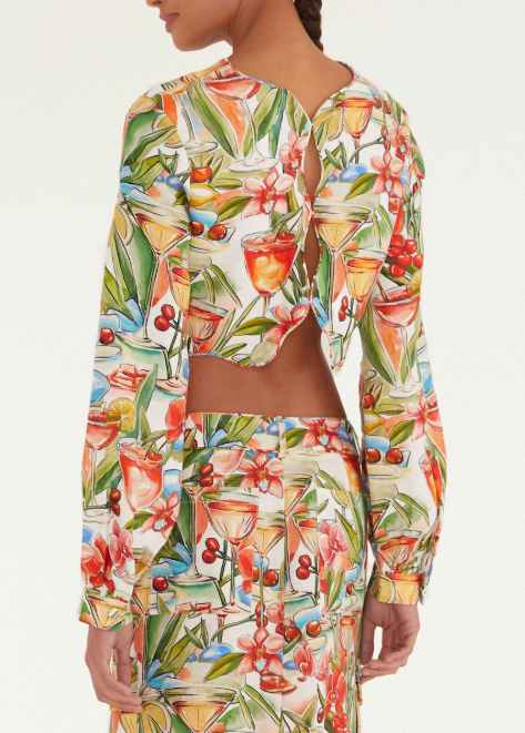 FARM Rio Cocktail Off-White Wavy Long Sleeve Top