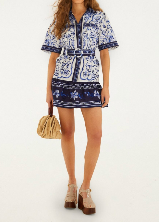 FARM Rio Porcelain Garden Off-White Mini Dress