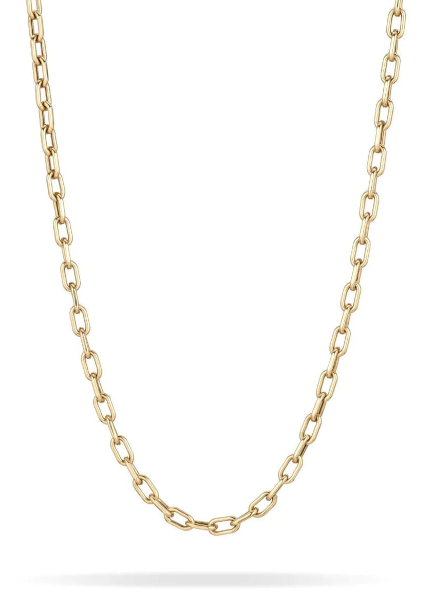 Our bestselling Italian chain in a 4mm gauge. Handcrafted in Italy from 14k gold, our lightweight chain features meticulously crafted hollow links for enhanced comfort, effortless wear, and seamless layering. Style it with our iconic charms for a timeless canvas to tell your unique story.