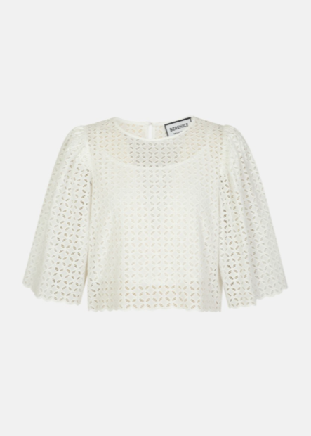 Bring a touch of elegance and femininity to your wardrobe with the CTICTOC top. This piece is made with English embroidery which gives it a romantic and sophisticated look. With its subtle transparency effect, this top is perfect for sunny days, outings with friends or summer evenings. Its wide 3/4 sleeves and its unique design combine comfort and style, making this crop-top a must-have for all the coolest girls!
