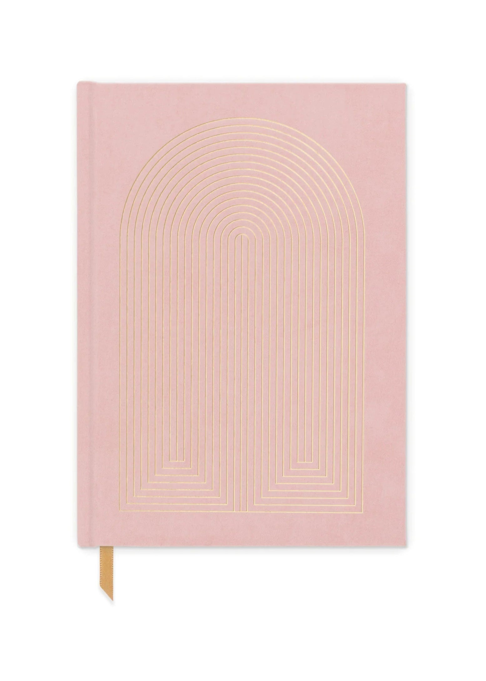 Turn a new page with the DesignWorks Ink Hard Cover Suede Cloth Journal With Pocket - Linear Boxes. Featuring a soft-to-the-touch sueded paper cover and gold geometric design, this cute journal is the perfect balance of form and function. The lined interior pages with day and month header are great for writing, notetaking, book journaling, and more. This green journal notebook includes a gold ribbon bookmark so you never lose your place.