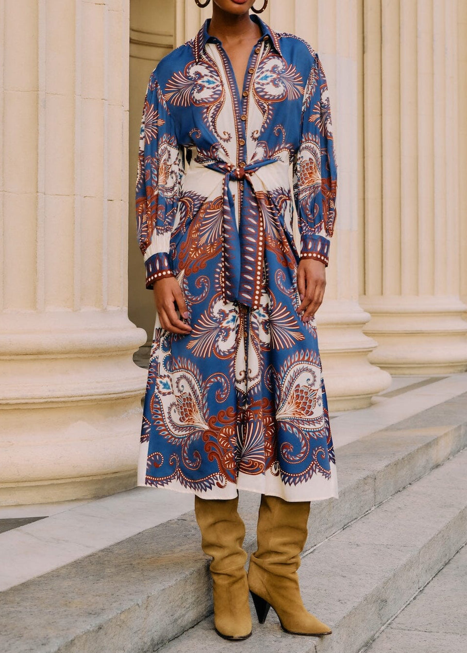 Wrapped in vibrant blue arabesque patterns, this midi dress from FARM Rio flows effortlessly with its soft Lenzing™ Ecovero™ viscose fabric. The collar neckline adds a touch of classic charm, while the playful silhouette dances with every step. Lightweight and breathable, this dress blends responsible craftsmanship with joyful elegance, inviting warmth and ease into your wardrobe with a distinct Brazilian flair.