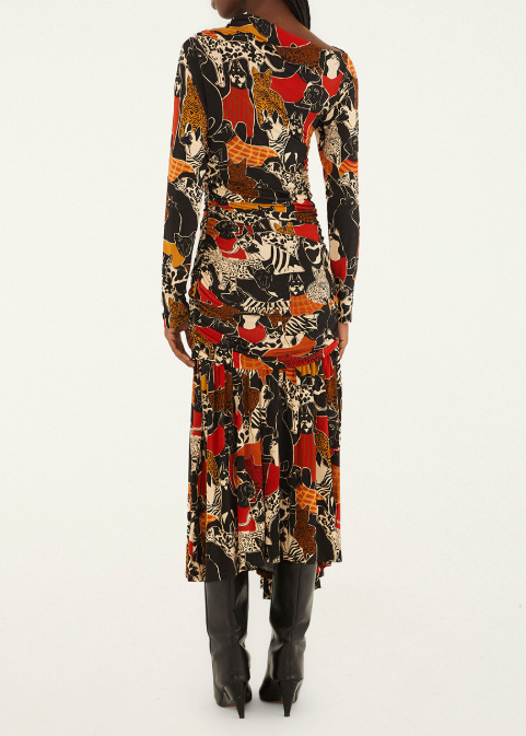 FARM Rio Cats And Dogs Black Long Sleeve Midi Dress