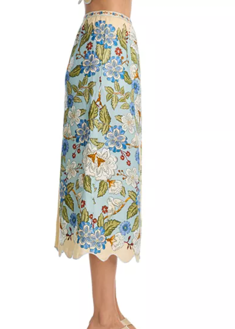 FARM Rio Garden Scarf Blue Midi Skirt