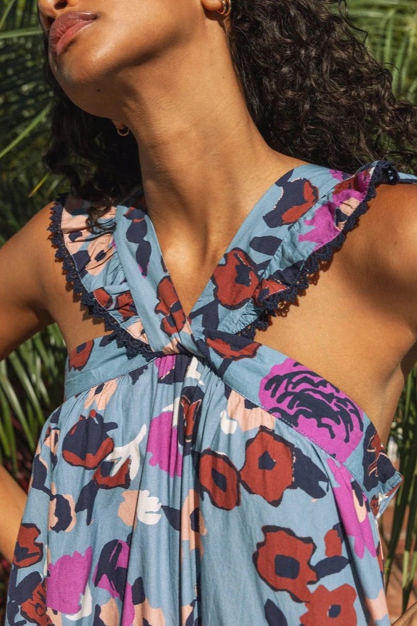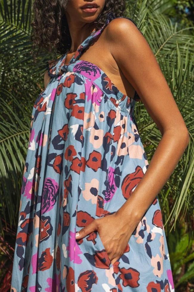 Made of organic cotton, the Hedy Midi Dress features a flowy silhouette. Its unique halter style straps are fitted with intricate lace trim details, and relaxed fitting skirt holds convenient pockets.