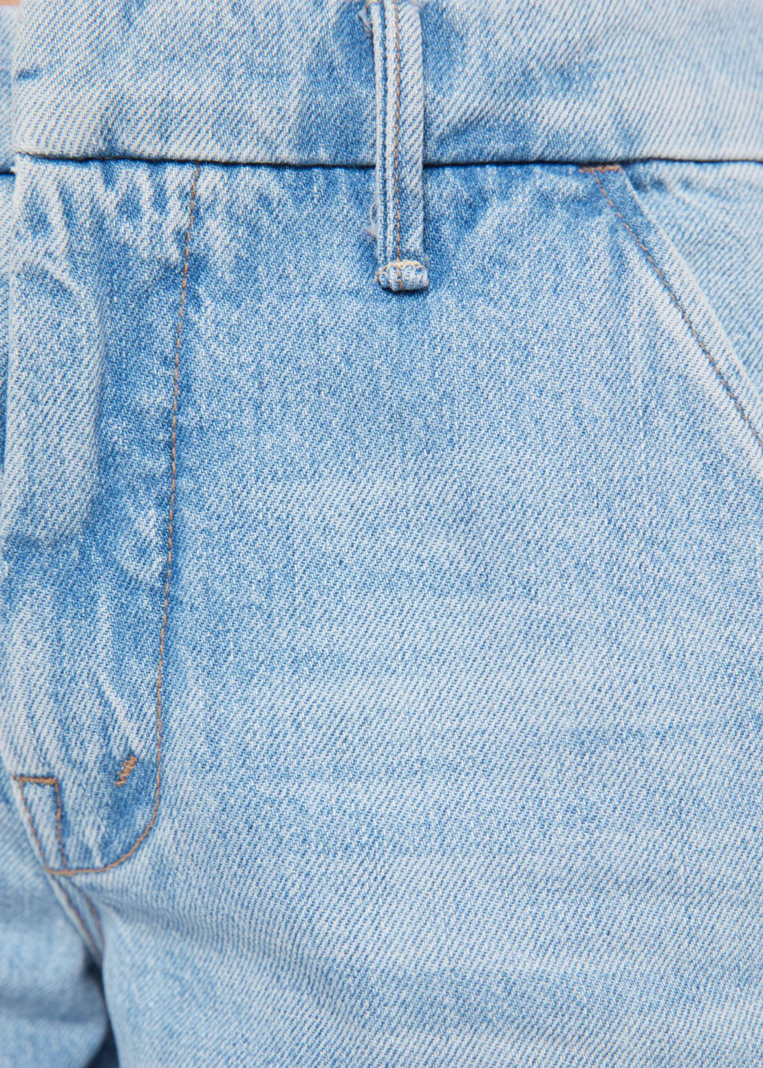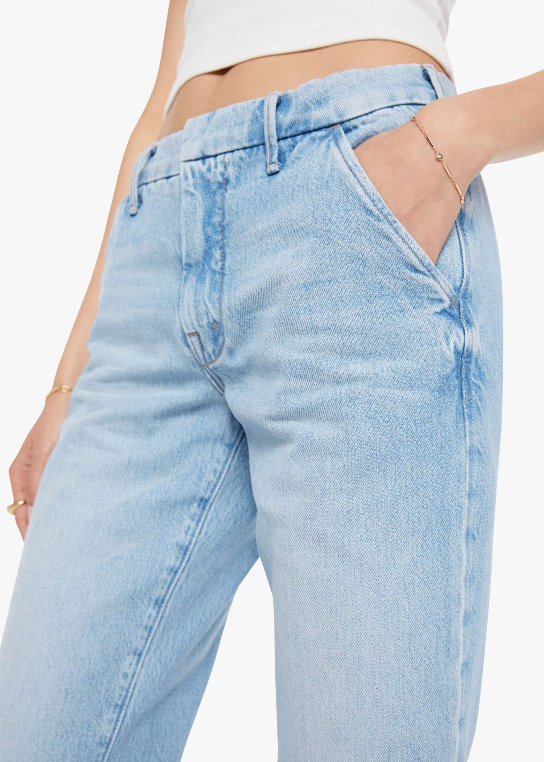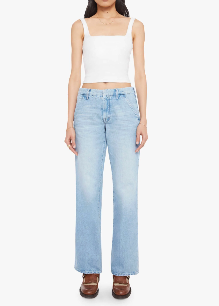 Hop in. A high-rise bootcut with a zip fly, slit pockets, looser leg and a long 32-inch inseam with a clean hem. Made from rigid SUPERIOR denim, This Is How I Roll is a light blue with whiskering and fading at the knees.