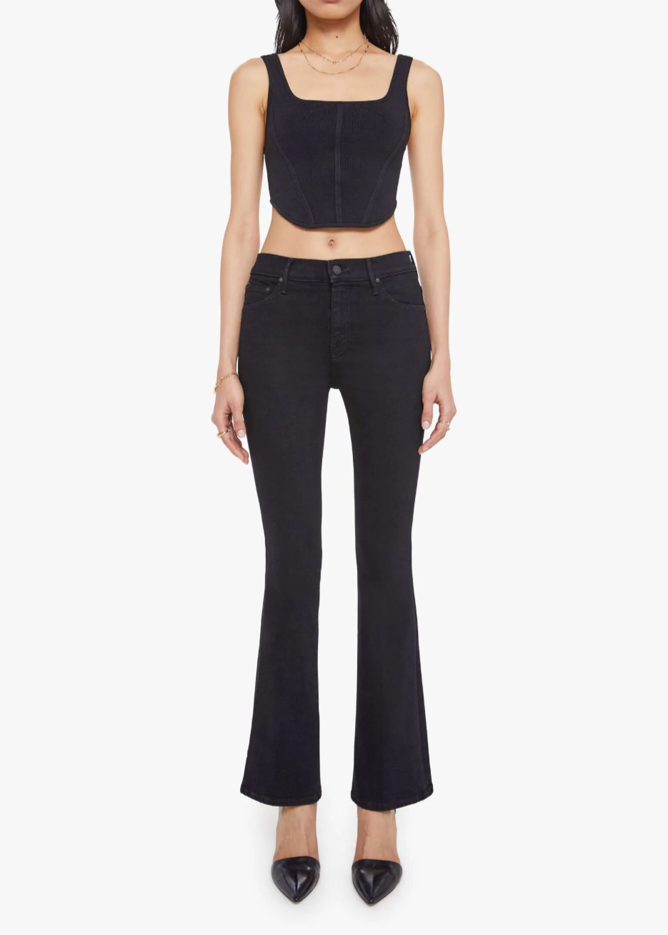 Sweet dreams. This cult-favorite flare jean has a mid rise with a 31-inch inseam and a clean hem. Cut from denim with a touch of stretch, Nighty Night is a dark black with tonal hardware.