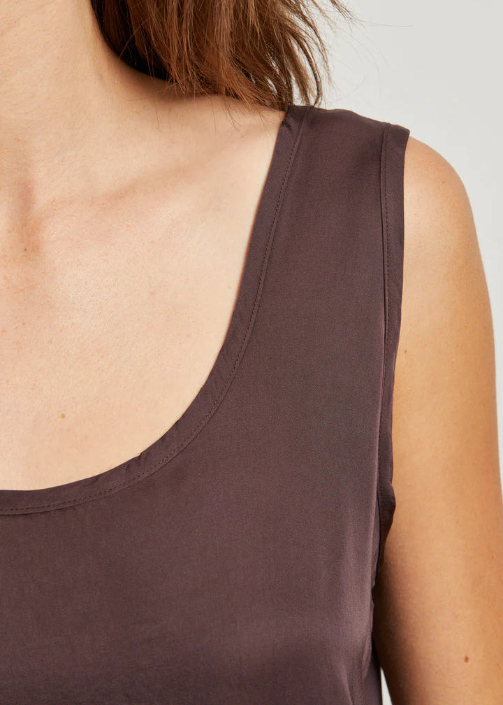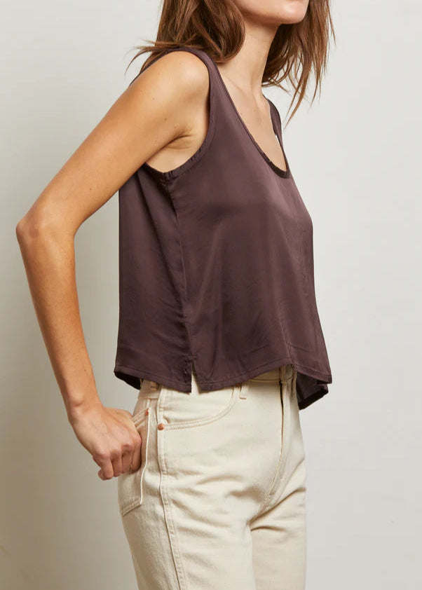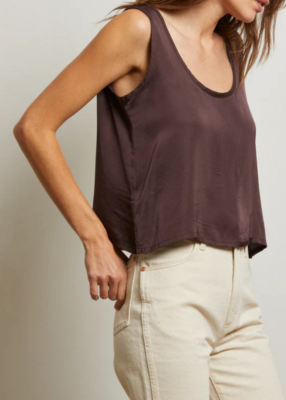 Perfect White Tee Silvie Satin Scoop Neck Tank | Cocoa
